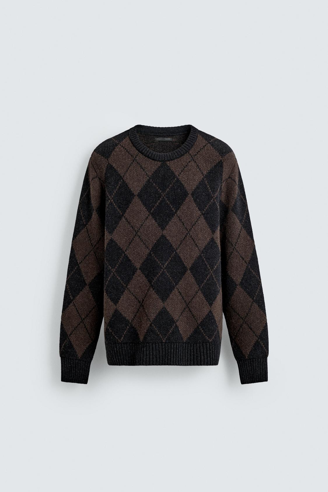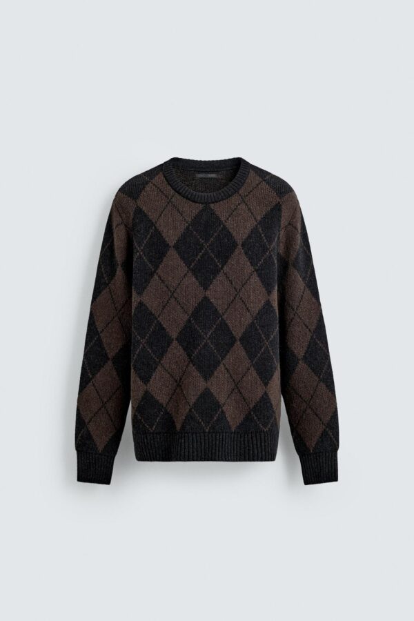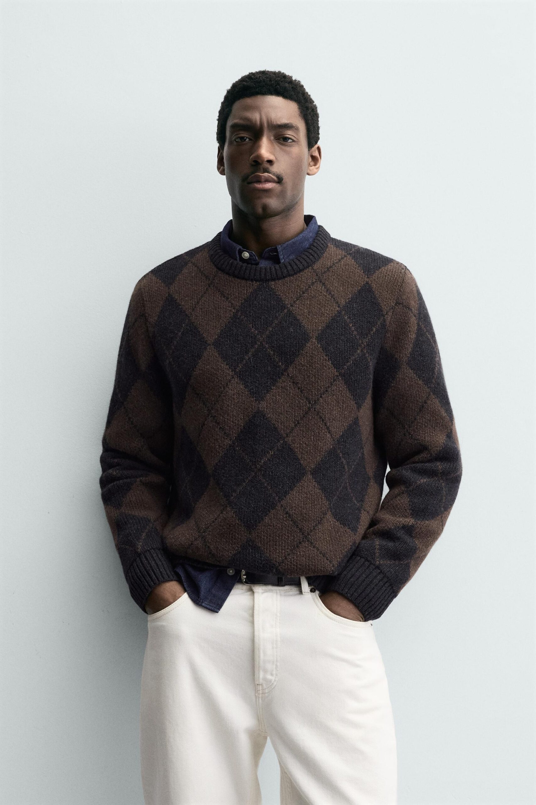 پلیور مردانه WOOL BLEND ARGYLE JACQUARD JUMPER زارا