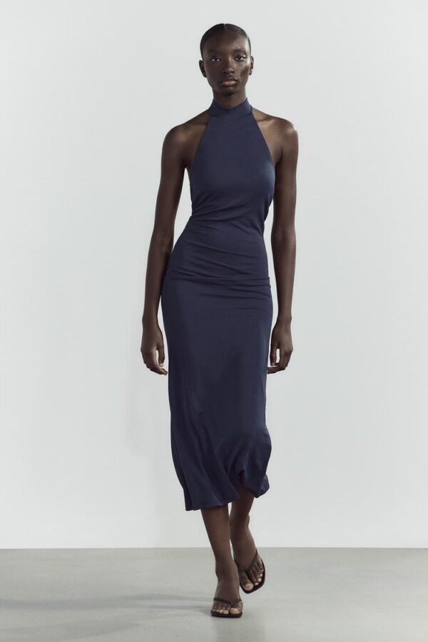 لباس مجلسی زنانه زارا LONG HALTER NECK GATHERED DRESS
