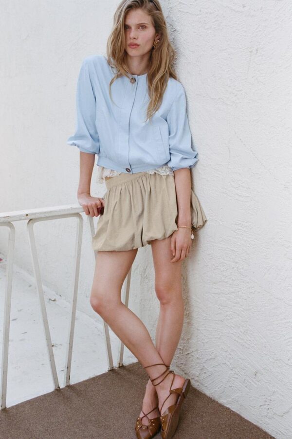 بامبر جکت زنانه PUFF-SLEEVE BOMBER JACKET برند زارا