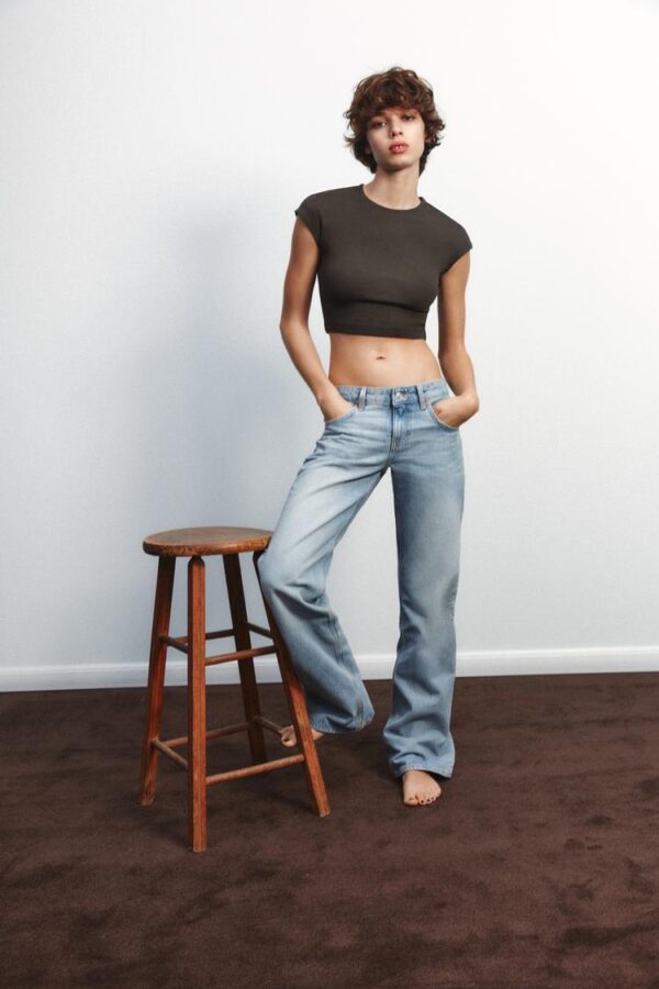 شلوار جین زنانه زارا TRF WIDE-LEG LOW-RISE JEANS