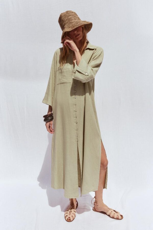 لباس بلند زنانه زارا LINEN BLEND SHIRT DRESS