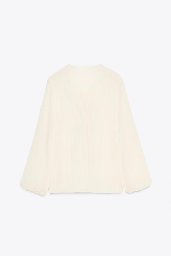 بلوز زنانه زارا SEMI-SHEER BLOUSE WITH RUFFLE TRIMS