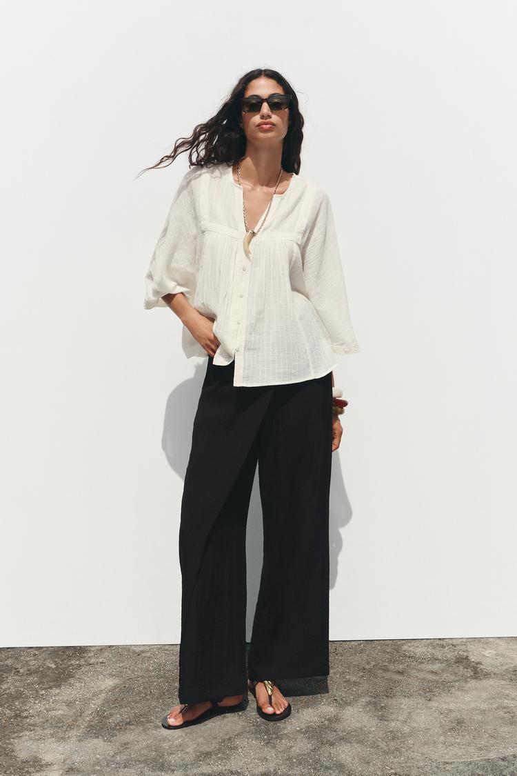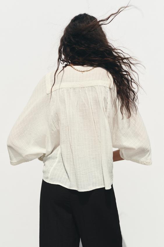 بلوز زنانه زارا WIDE SLEEVE EMBROIDERED BLOUSE