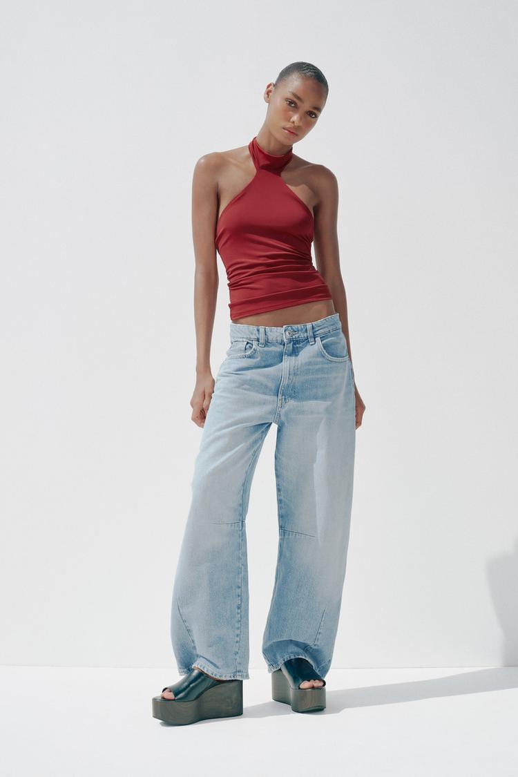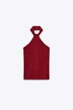 این تاپ شیک از برند زارا با یقهی هالتر و طراحی شانهباز، جلوهای زنانه و مدرن دارد.