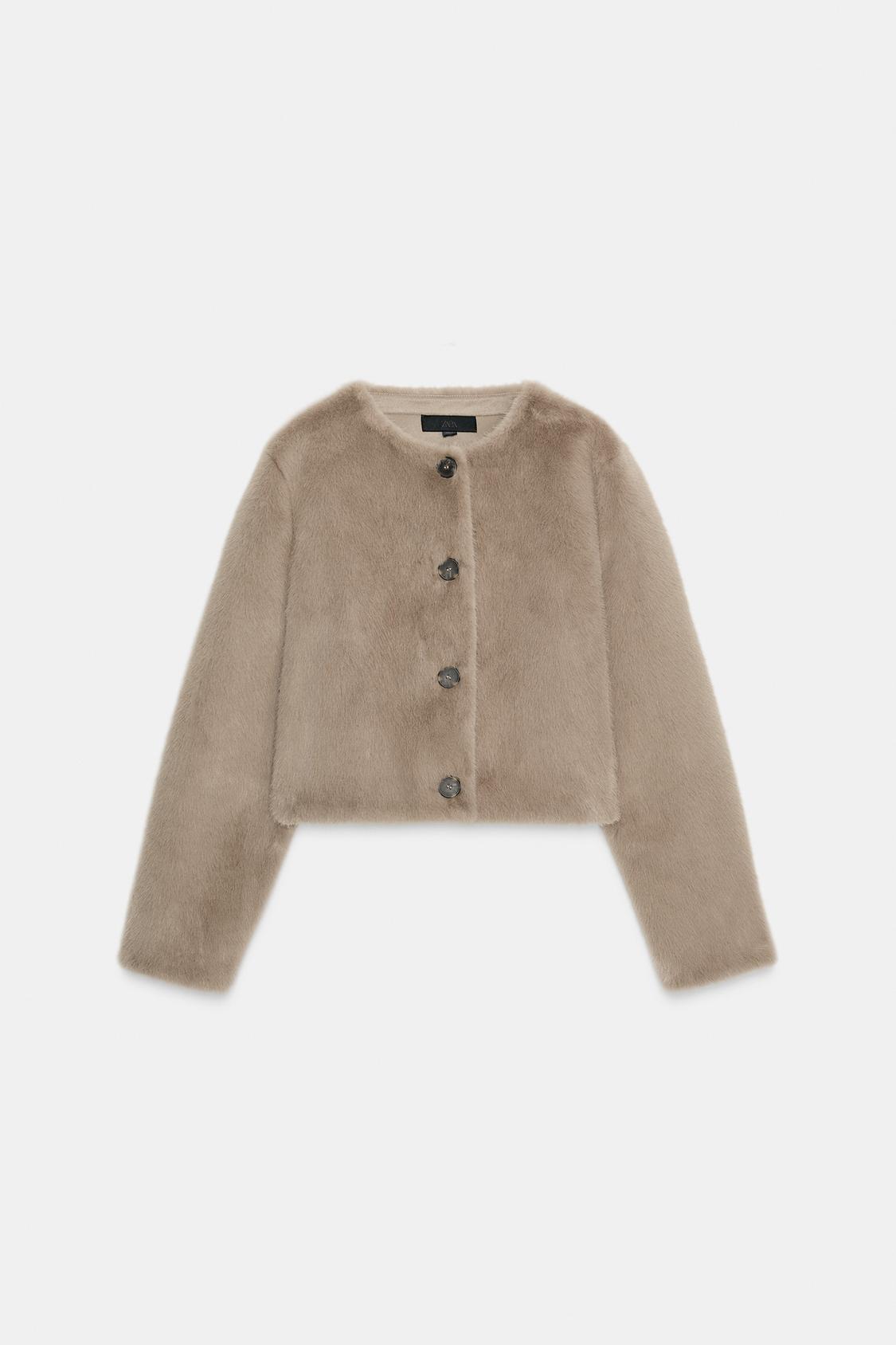 جَکِت کوتاه فوو فِر (Faux Fur Short Jacket) از Zara یک انتخاب لوکس و مدرن برای فصول سرد است. طراحی کوتاه با خط گردن ساده و آستینهای بلند، ظاهری جمعوجور و شکیل دارد. جنس رویی آن از الیاف مصنوعی (پلیاستر) ساخته شده و بافتی نرم و خزنما دارد که حس راحتی و گرما را همزمان فراهم میکند.