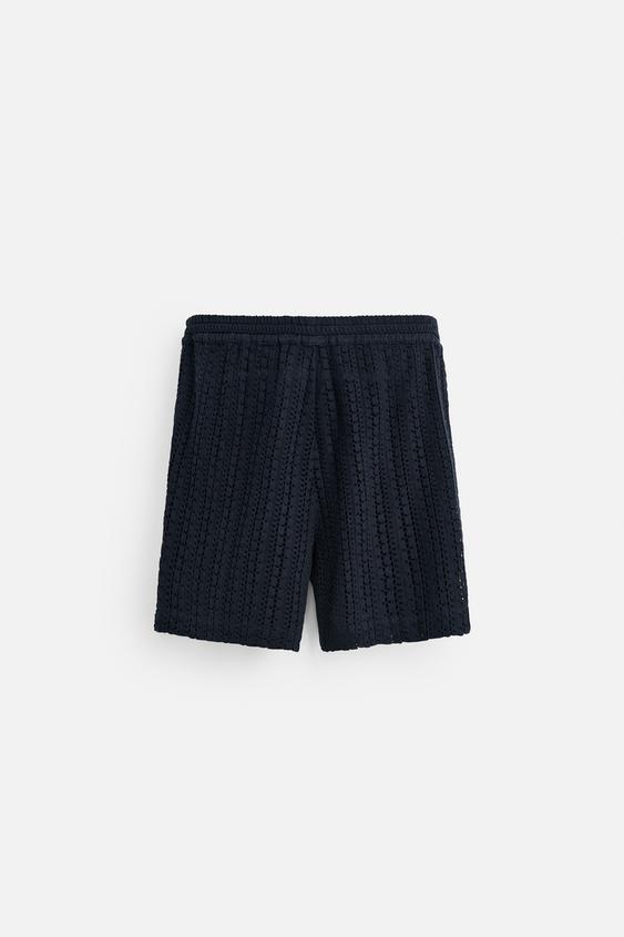 شلوارک مردانه زارا TEXTURED CROCHET BERMUDA SHORTS