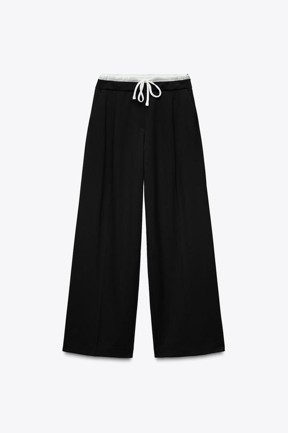 شلوار زنانه زارا WIDE-LEG TROUSERS WITH DOUBLE WAISTBAND