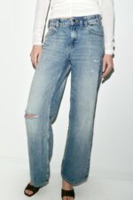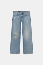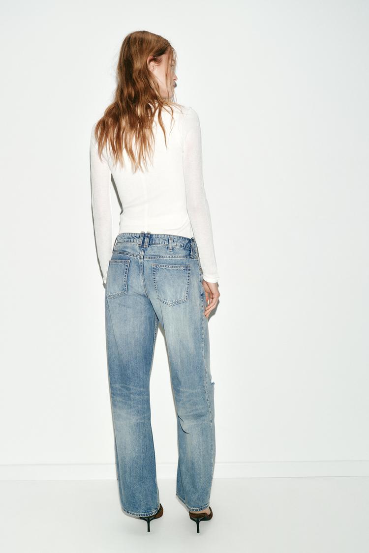 شلوار زنانه Z1975 STRAIGHT LOW-RISE RIPPED JEANS زارا