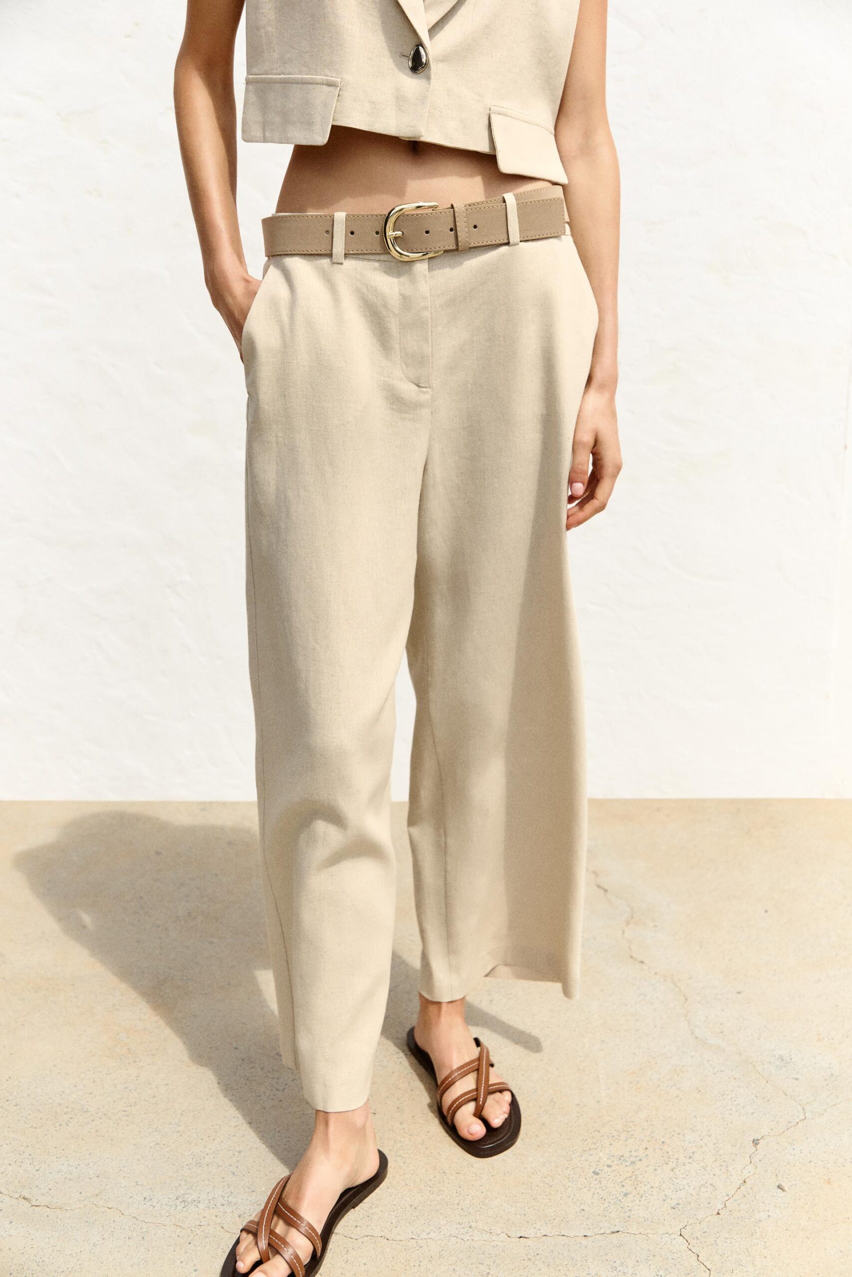 شلوار زنانه زارا، دوختهشده از ترکیب خنک و سبک لینن، گزینهای ایدهآل برای استایلهای تابستانی.