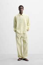 شلوار مردانه زارا LINEN/COTTON STRAIGHT-LEG TROUSERS
