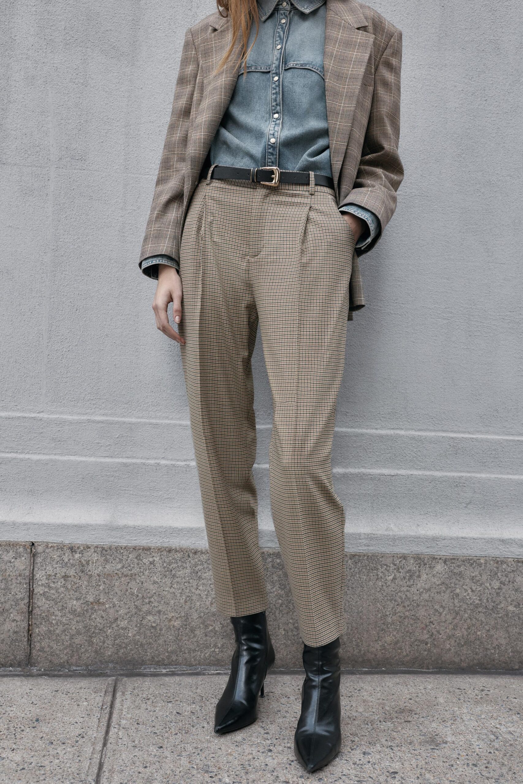 شلوار زنانه HOUNDSTOOTH TROUSERS WITH BELT زارا