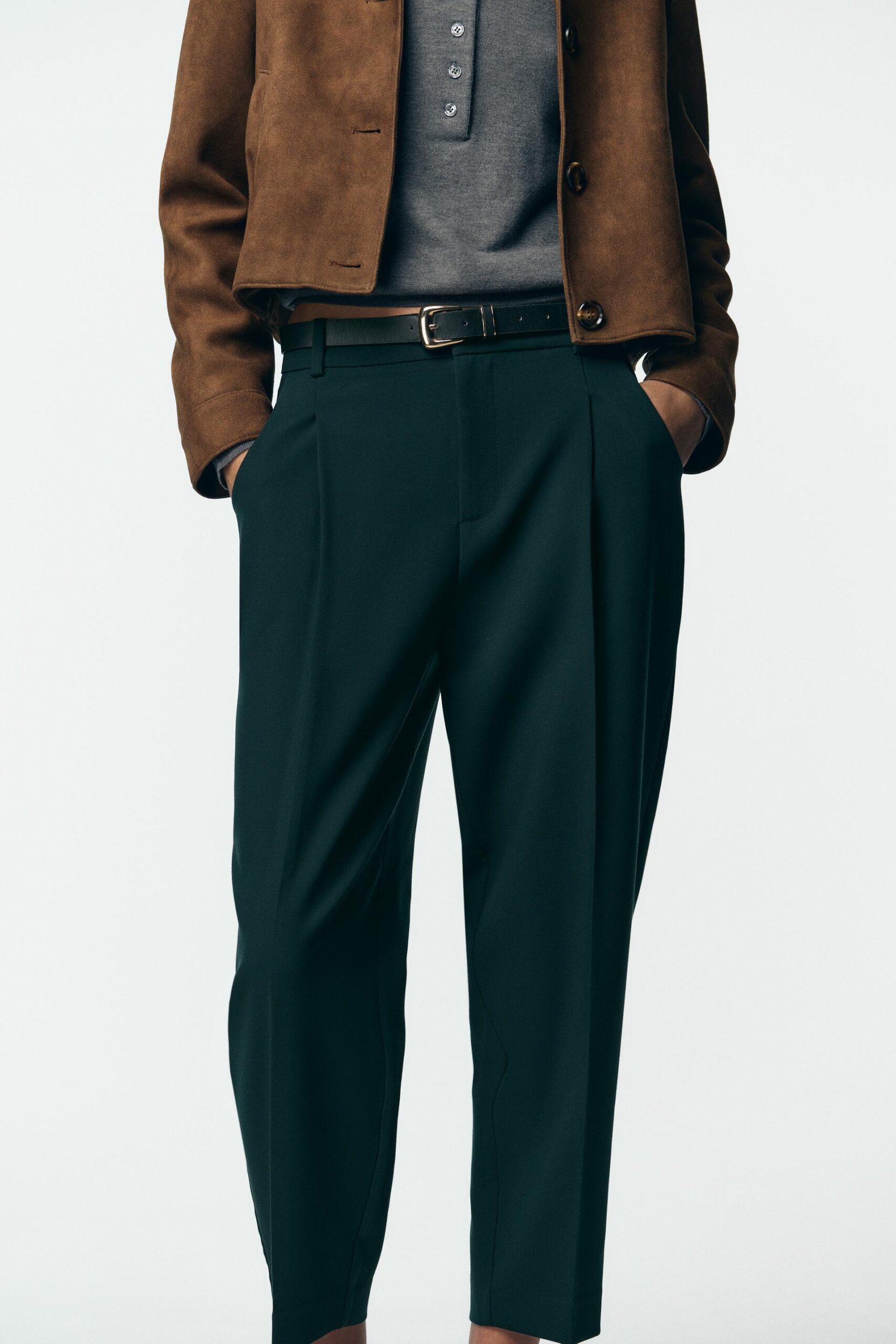 دوخت سهبعدی (darts) در جلو، فرم زیبا و ساختار دقیق به این شلوار میبخشدجیبهای کاربردی در جلو و جیبهای فیک با درب پشت (false flap pockets) حس طراحی خاص همچون کت و شلوار را به ارمغان میآورد.فرم پا بهصورت straight leg است که ظاهری کلاسیک و ارتجاعپذیر دارد.جایگاه بستهشدن در جلو با زیپ، دکمه داخلی و قلاب فلزی تضمینگر راحتی و ثبات در تنظیماند.