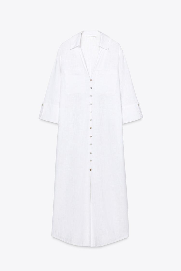 لباس بلند زنانه زارا LINEN BLEND SHIRT DRESS