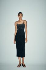 پیراهن میدی زنانه زارا با فرم جذب (Fitted) و طراحی ظریف و زنانه.