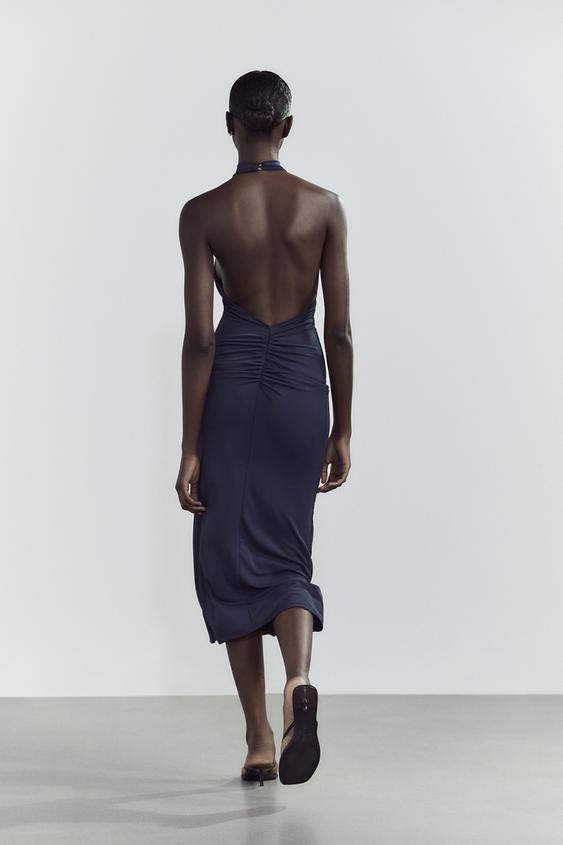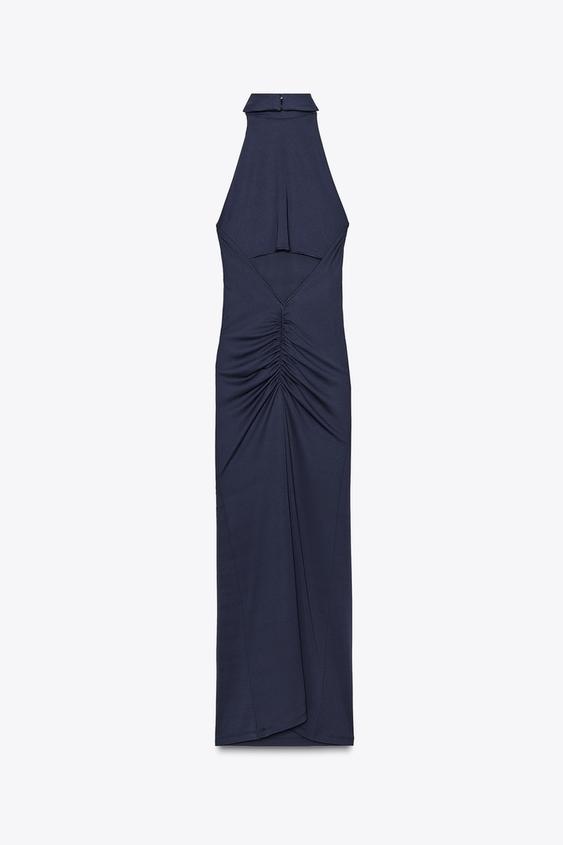 لباس مجلسی زنانه زارا LONG HALTER NECK GATHERED DRESS