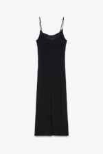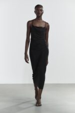 لباس میدی روان با بند های نازک و جزئیات جمع شده.