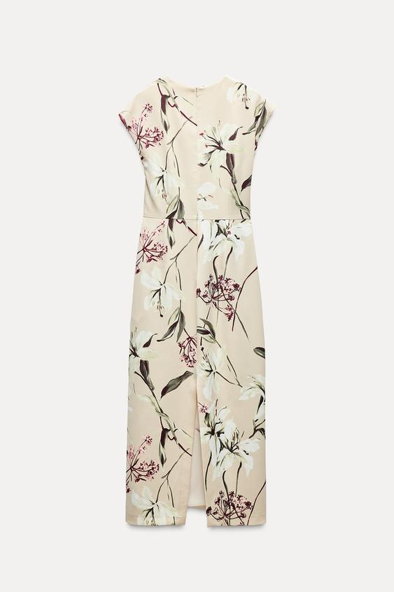 لباس میدی زنانه زارا FLORAL PRINT SATIN MIDI DRESS
