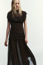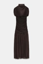 با طول میدی، ترکیبی از پوشیدگی و سبک معاصر بهدست آمده است، مناسب برای مهمانیها، شامهای رسمی یا مراسمهای خاص. این پیراهن، نمادی از کیفیت، طراحی دقیق و سبک کمنقص برند ZARA است.