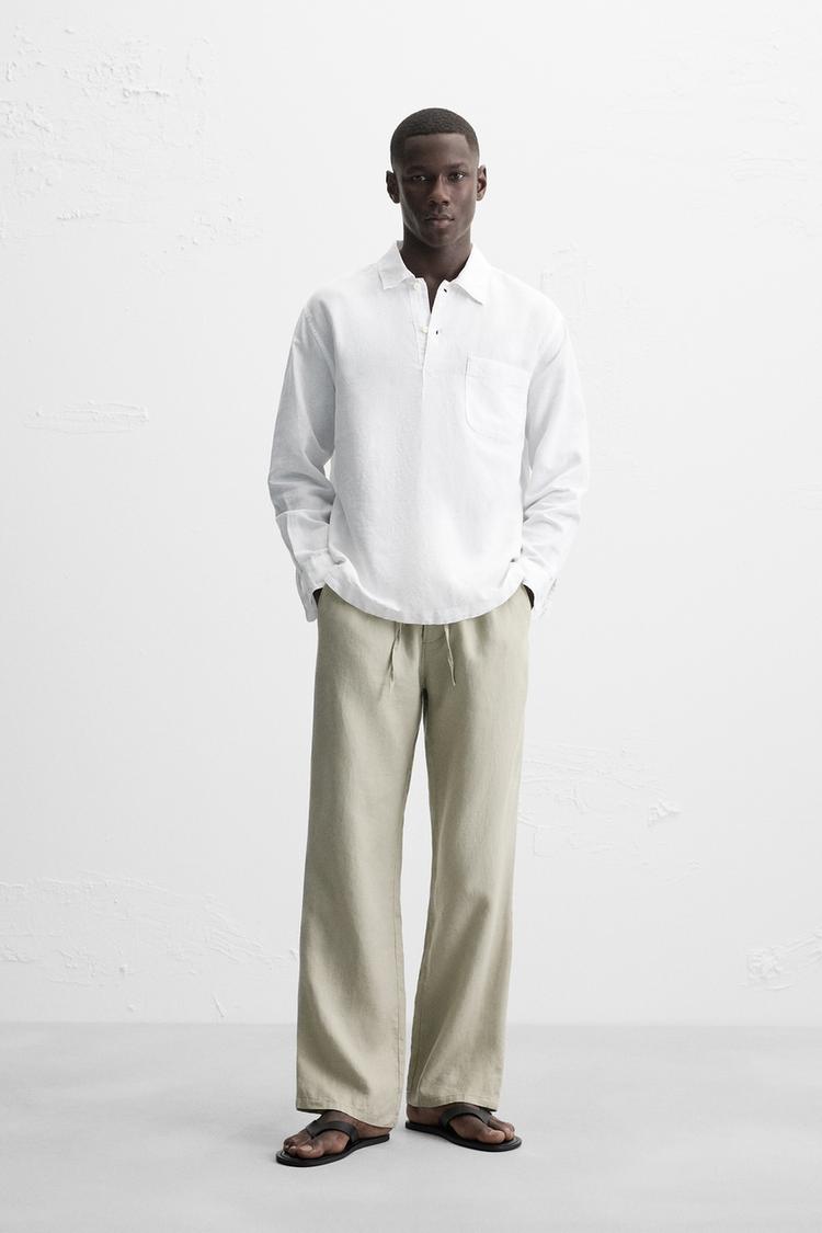 پیراهن مردانه زارا LINEN/COTTON POLO SHIRT – ترکیبی از راحتی و استایل با پارچه لینن و پنبه