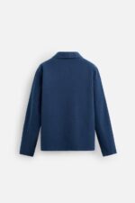 پیراهن از پارچه نخی بوم. دارای یقه یقه ای با بازشو جلو، آستین های بلند، یک جیب وصله داخلی، سجاف با دریچه های کناری و جلوه شسته شده.