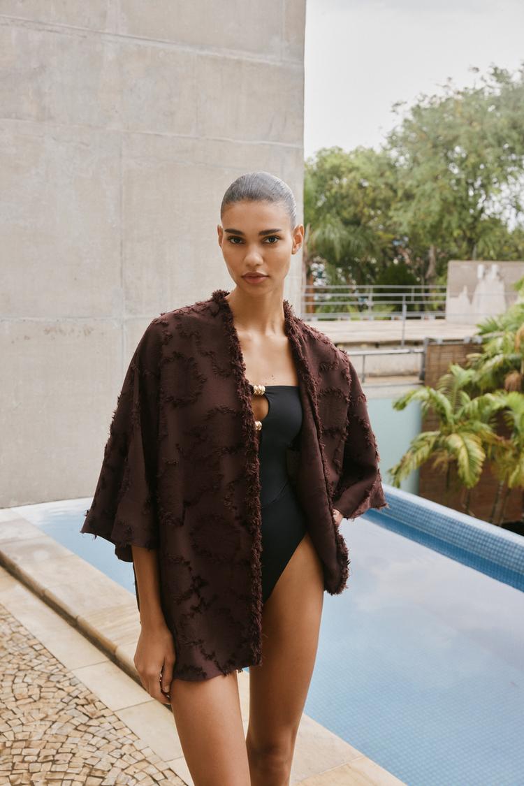 ژاکت کیمونو زنانه زارا TEXTURED FABRIC KIMONO JACKET