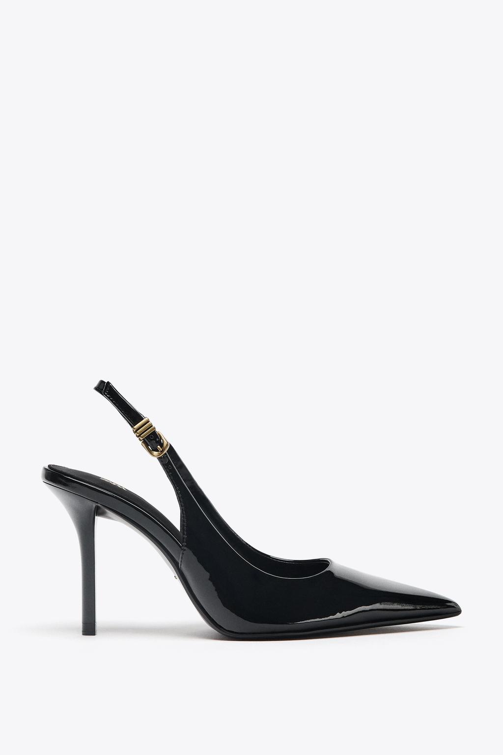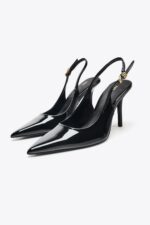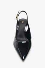 انتخابی شیک و ایدهآل برای استایل رسمی و مجلسی است. این کفش پاشنهدار با طراحی Slingback مجهز به بند پشت پاشنه و سگک فلزی براق است که علاوه بر زیبایی، راحتی و ثبات بیشتری هنگام راهرفتن فراهم میکند. نوک تیز (Pointed Toe) و پاشنه باریک با ارتفاع تقریبی ۸ سانتیمتر جلوهای ظریف و کشیده به پاها میبخشد. متریال بهکاررفته در رویه، آستر و زیره از پلیاورتان (PU) با کیفیت است که ماندگاری و ظاهر لوکس کفش را تضمین میکند.